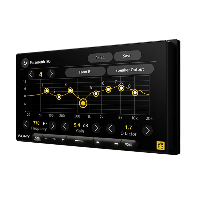 To optimise performance across different speaker configurations, you can use 8-band parametric EQ for each of the 6 channels independently, by cutting and boosting 8 custom frequencies for each speaker and subwoofer output. You can also adjust the Q-factor (adjustment width) for each of the 8 select frequencies.